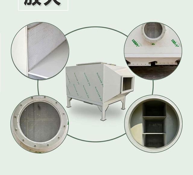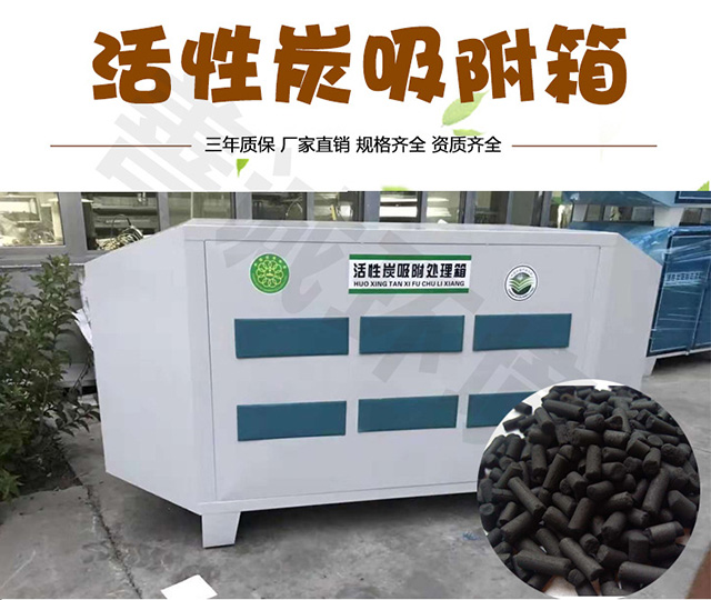 當廢氣由風機提供動力,負壓進入吸附箱后進入活性炭吸附層,由于活性炭吸附劑表面上存在著未平衡和未飽和的分子引力或化學鍵力,因此當活性炭吸附劑的表面與氣體接觸時,就能吸引氣體分子,使其濃聚并保持在活性炭表面,此現象稱為吸附。利用活性炭吸附劑表面的吸附能力,使廢氣與大表面的多孔性活性炭吸附劑相接觸,廢氣中的污染物被吸附在活性炭表面上,使其與氣體混合物分離,凈化后的氣體高空排放。 活性炭吸附箱是一種干式廢氣處理設備,由箱體和填裝在箱體內的吸附單元組成。