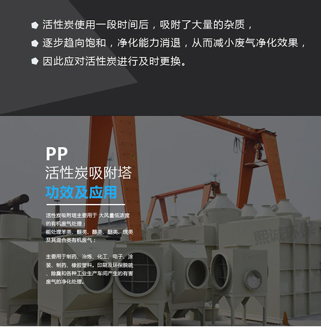 活性炭吸附箱主要用于大風量低濃度的有機廢氣處理;活性炭吸附劑可處理凈化多種有機和無機污染物:苯類、酮類、醇類、醚類、烷類及其混合類有機廢氣、酸性廢氣、堿性廢氣;主要用于制藥、冶煉、化工、機械、電子、電器、涂裝、制鞋、橡膠、塑料、印刷及環保脫硫、除臭和各種工業生產車間產生的有害廢氣的凈化處理。