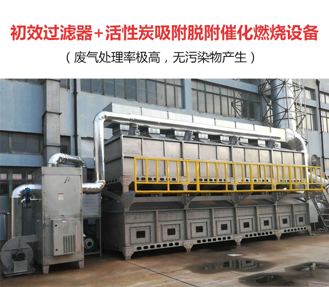 噴漆房所產生的有機廢氣經收集罩,經過管道抽到車間外進漆塵預處理設備再進入吸附+脫附+催化燃燒廢氣凈化裝置。