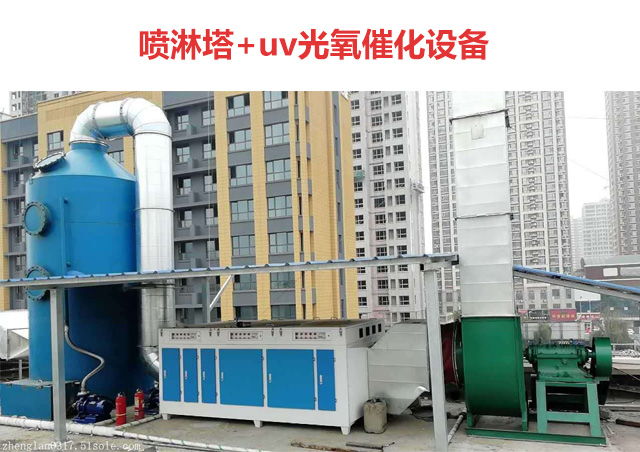 4、噴漆房廢氣處理方法四:水噴淋+光催化+活性炭吸附