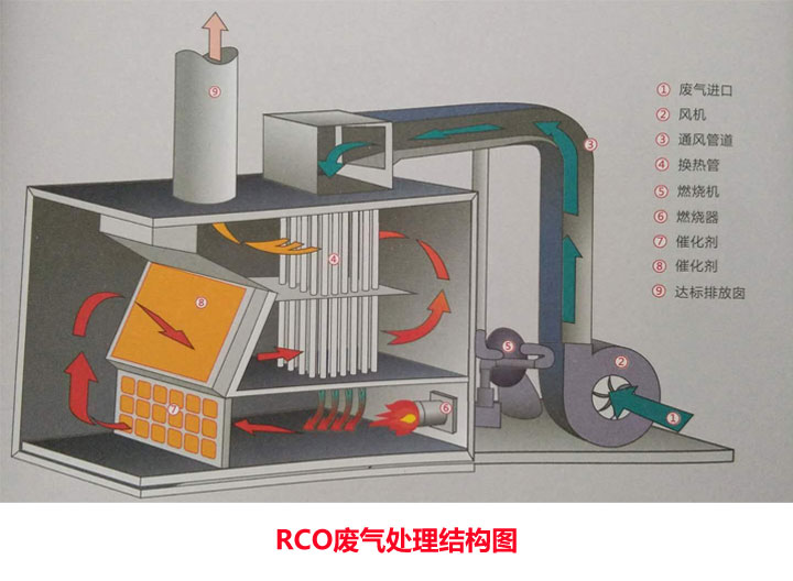 RCO處理技術特別適用于熱回收率需求高的場合,也適用于同一生產線上,因產品不同,廢氣成分經常發生變化或廢氣濃度波動較大的場合。