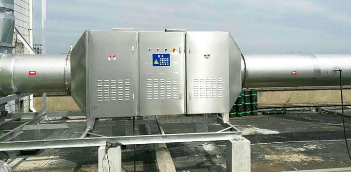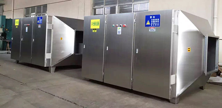 【設備原理】運用253.7納米波段光切割、斷鏈、燃燒、裂解廢氣分子鏈,改變分子結構;取185納米波段光對廢氣分子進行催化氧化,使破壞后的分子或中子、原子以O3進行結合,在催化氧化過程中,轉變成低分子化合物CO2、H2O等;再根據不同的廢氣成分配置7種以上相對應的惰性催化劑,全方位與光源接觸,使其與廢氣進行充分反應,提高廢氣凈化效率。