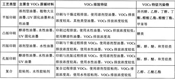 印刷、包裝廠主要產(chǎn)品為各種塑料薄膜的印刷制品,在生產(chǎn)中大量使用彩色油墨和有機(jī)稀料,油墨用的稀料(溶劑)會(huì)有大量的甲苯、乙酸乙酯、丁酮、異丙醇、非甲烷總烴氣體揮發(fā)排放,特別是印品干燥過(guò)程中,占油墨總量70%~80%的有機(jī)溶劑的揮發(fā)產(chǎn)生大量的VOCs。