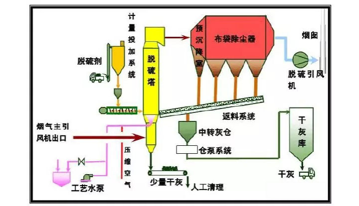 干法煙氣脫硫是指采用粉末或顆粒狀吸收劑、吸附劑或催化劑從煙氣中脫除二氧化硫。具有工藝簡單、無污水和酸處理、能耗低,特別是凈化后煙氣溫度高的優(yōu)點(diǎn),有利于煙囪排氣擴(kuò)散,無“白煙”現(xiàn)象,凈化后的煙氣不需要二次加熱,腐蝕性小。