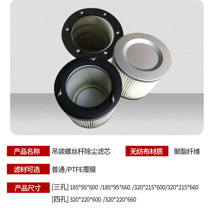 濾筒除塵器以濾筒作為過濾元件所組成或采用脈沖噴吹的除塵器。 濾筒除塵器按安裝方式分,可以分為斜插式,側裝式,吊裝式,上裝式。 濾筒除塵器按濾筒材料分,可以分為長纖維聚酯濾筒除塵器、復合纖維濾筒除塵器、防靜電濾筒除塵器、阻燃濾筒除塵器、覆膜濾筒除塵器、納米濾筒除塵器等。