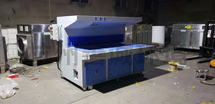濕式防爆打磨臺主要處理易燃易爆粉塵,例如鋁件、鋁合金件、鎂合金件、鋁壓鑄件等粉塵處理,都需要上此設備。濕式防爆打磨臺采用水循環處理系統,對粉塵處理效率在95%以上。